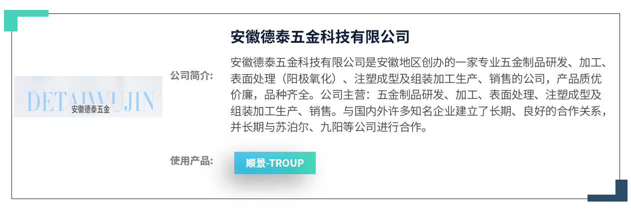 在德泰五金对多家爱游戏官网首页厂商反复调研,查看爱游戏官网首页产品等一系列的了解和咨询后,最终于2018年4月选择携手在制造业领域拥有20余年丰富经验的顺景软件作为信息化合作伙伴,并选定顺景爱游戏官网首页爱游戏官网首页作为此次管理变革的重要工具。